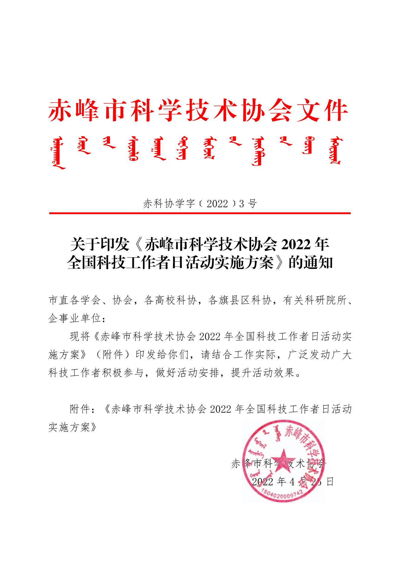关于印发《赤峰市科学技术协会2022年全国科技工作者日活动实施方案》的通知.pdf